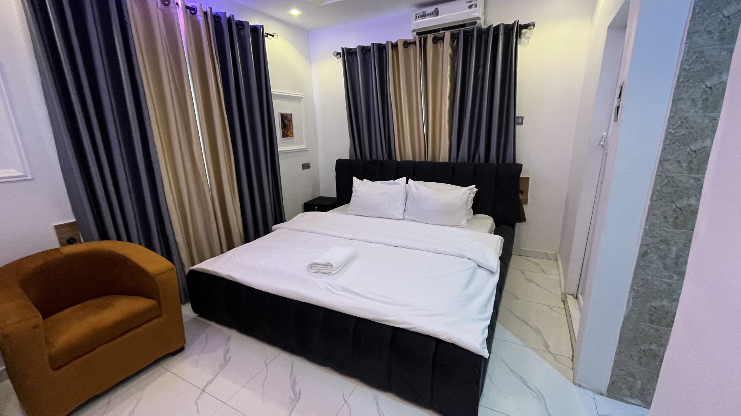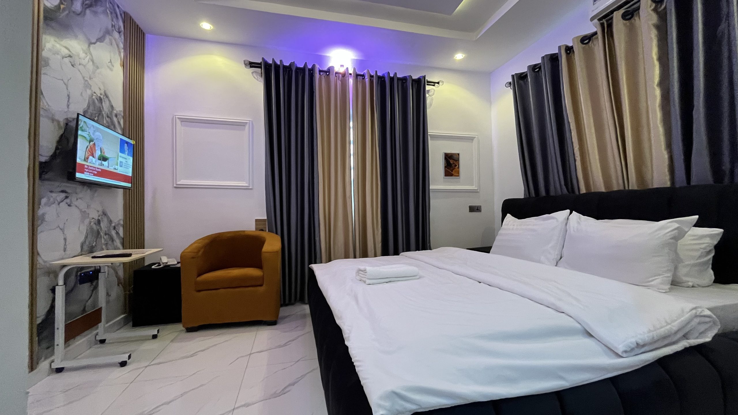 - Amenities: 24/7 Power, Air Conditioning, Flat TV, Free WiFi, Premium Comfort